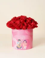 Box con 15 rosas rojas premium en diseño ilustrado edición especial. Ideal para aniversarios, cumpleaños, San Valentín y momentos románticos. Incluye tarjeta dedicatoria personalizada y delivery puntual en Lima y Callao.