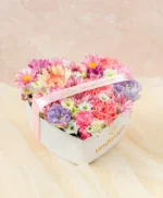 Sorprende con un delicado arreglo floral en forma de corazón, acompañado de un hermoso cinta Feliz Cumpleaños