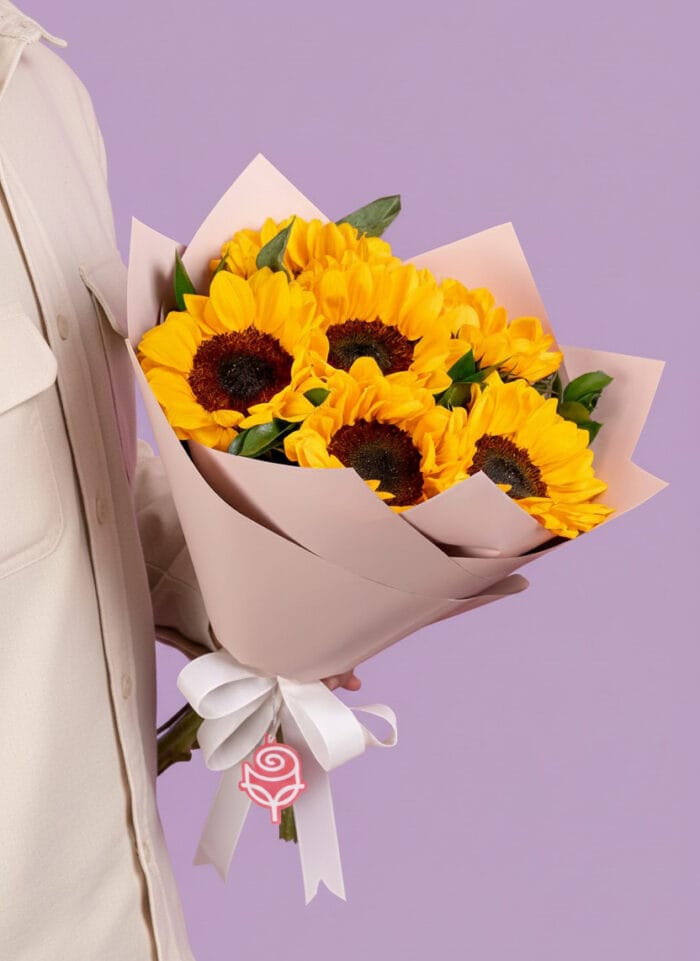 Demuestra tu cariño con este hermoso ramo de 6 girasoles, Es perfecto para demostrarle ese amor incondicional. ¡Regala este detalle ideal y celebra cualquier ocasión especial! Regala sonrisas con flores amarillas frescas.