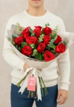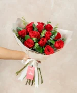 ¡12 rosas rojas en ramo, ideal para ocasiones románticas, aniversarios o declaraciones especiales!