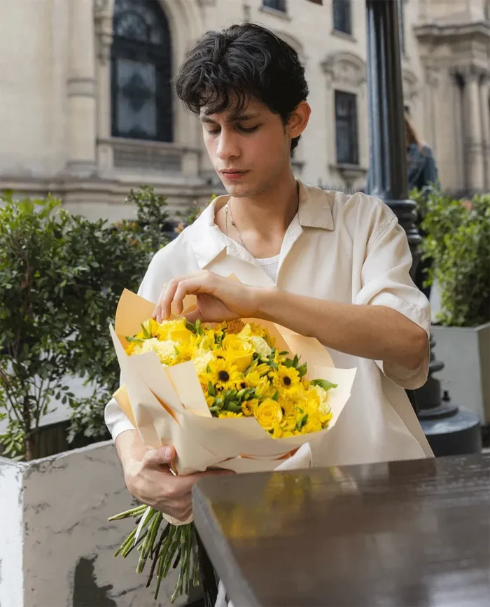 Obsequia este hermoso ramo de 6 rosas amarillas, astromelias, minigirasol y asombra a esa persona especial. ¡Es perfecto para celebrar cualquier ocasión especial!